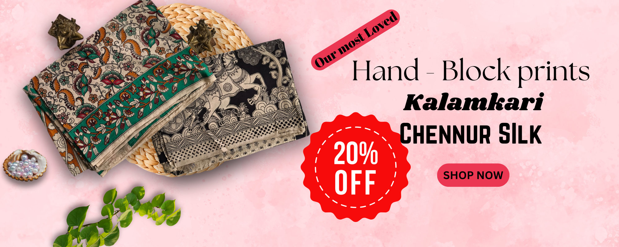 Beige & Red Mangalgiri cotton Kalamkari Saree