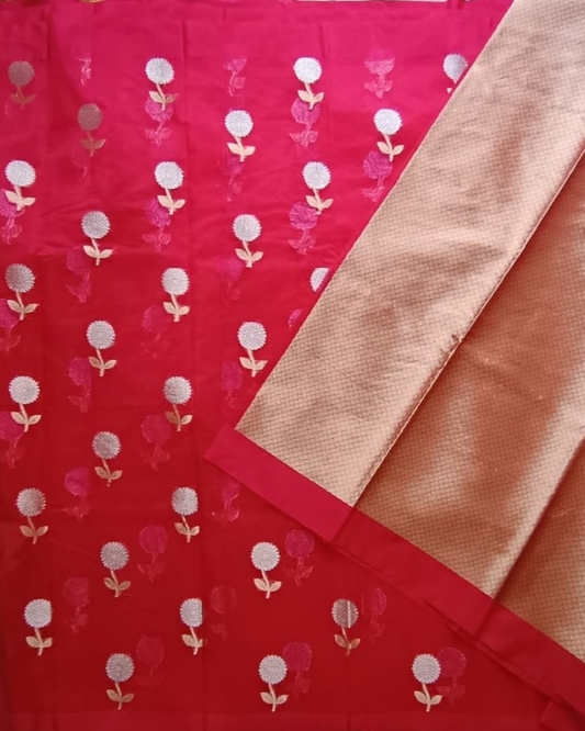 Burgundy Geecha silk - Batik Screen Print (handmade) saree