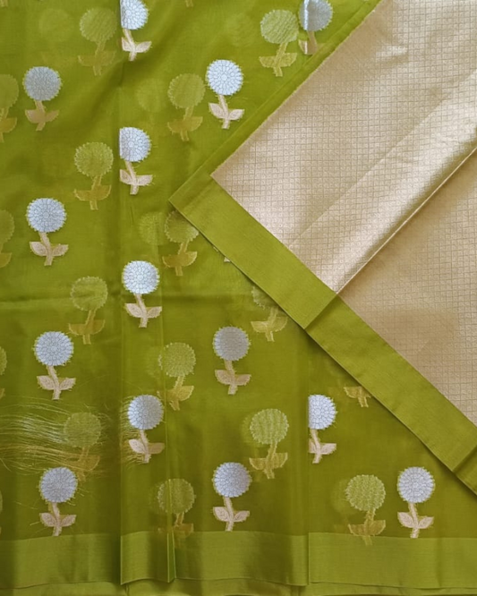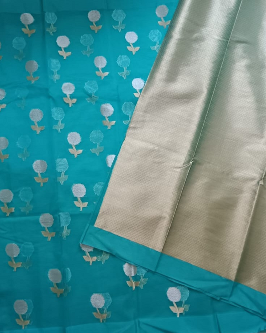 Pastel Blue Banarasi Semi Kora Organza Saree