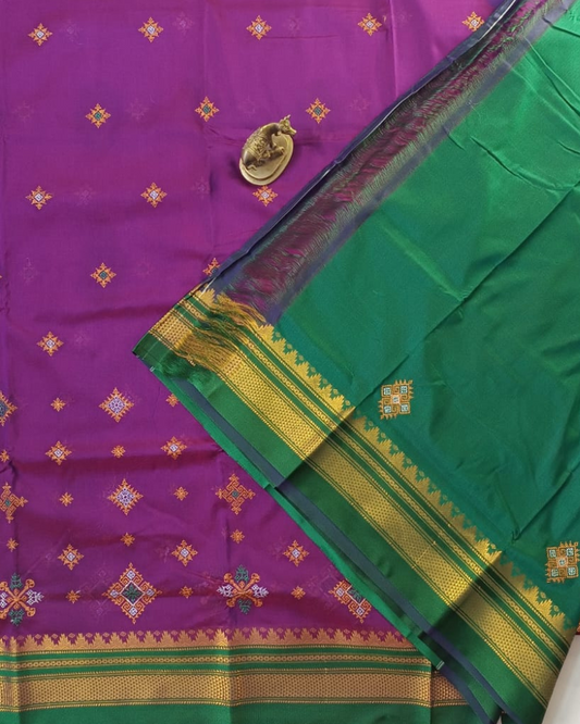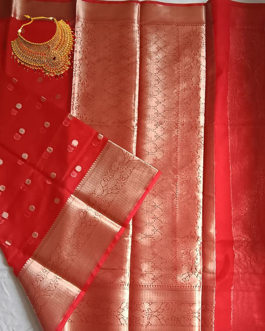 Red Geecha silk - Batik Screen Print (handmade) saree