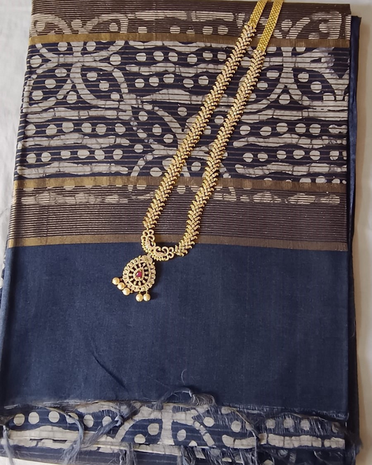 Indigo Geecha silk - Batik Screen Print (handmade) saree