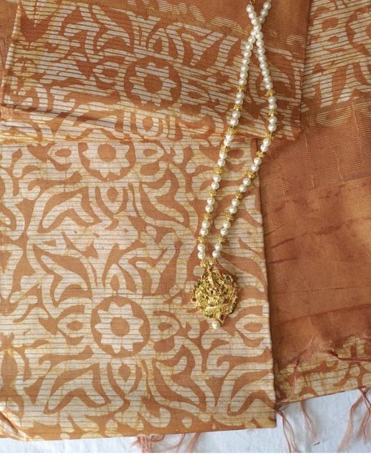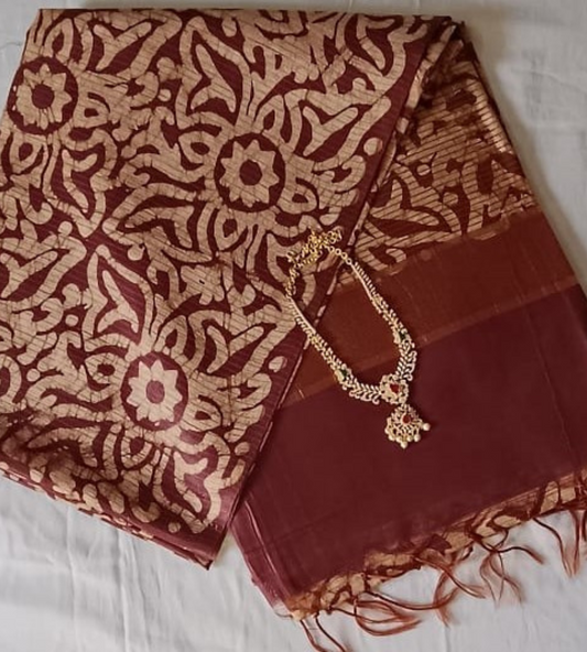 Brown Geecha silk Batik style Screen Print saree