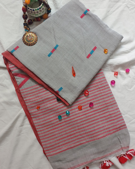 Handloom Gray Mul Cotton Saree