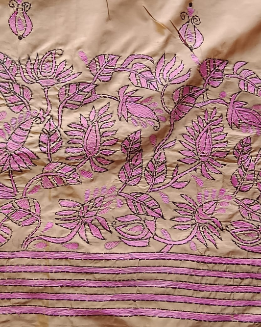 Beige Kantha work saree