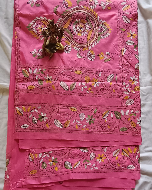 Sold outPink Kantha work saree