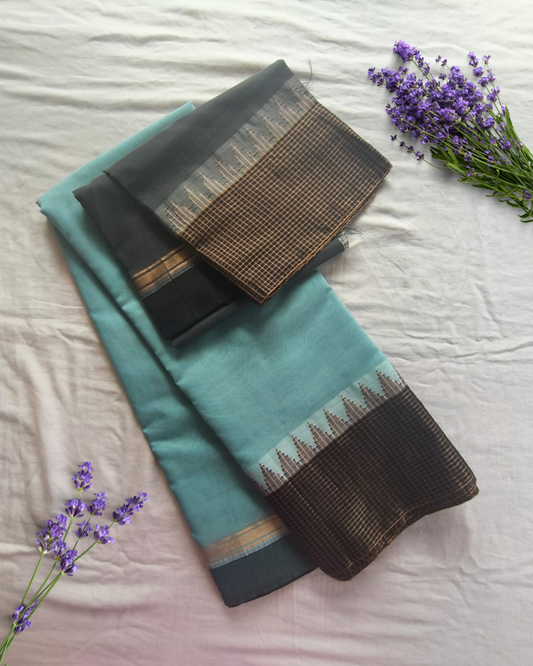 Pastel Blue Fancy Border Gadwal Handloom Cotton