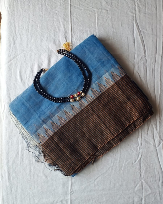 Blue Fancy Border Gadwal Handloom Cotton