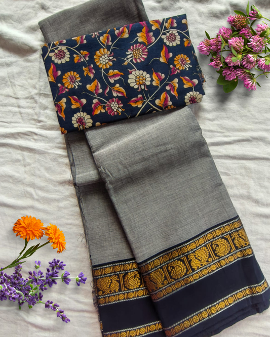 Grey Fancy Border Gadwal Handloom Cotton
