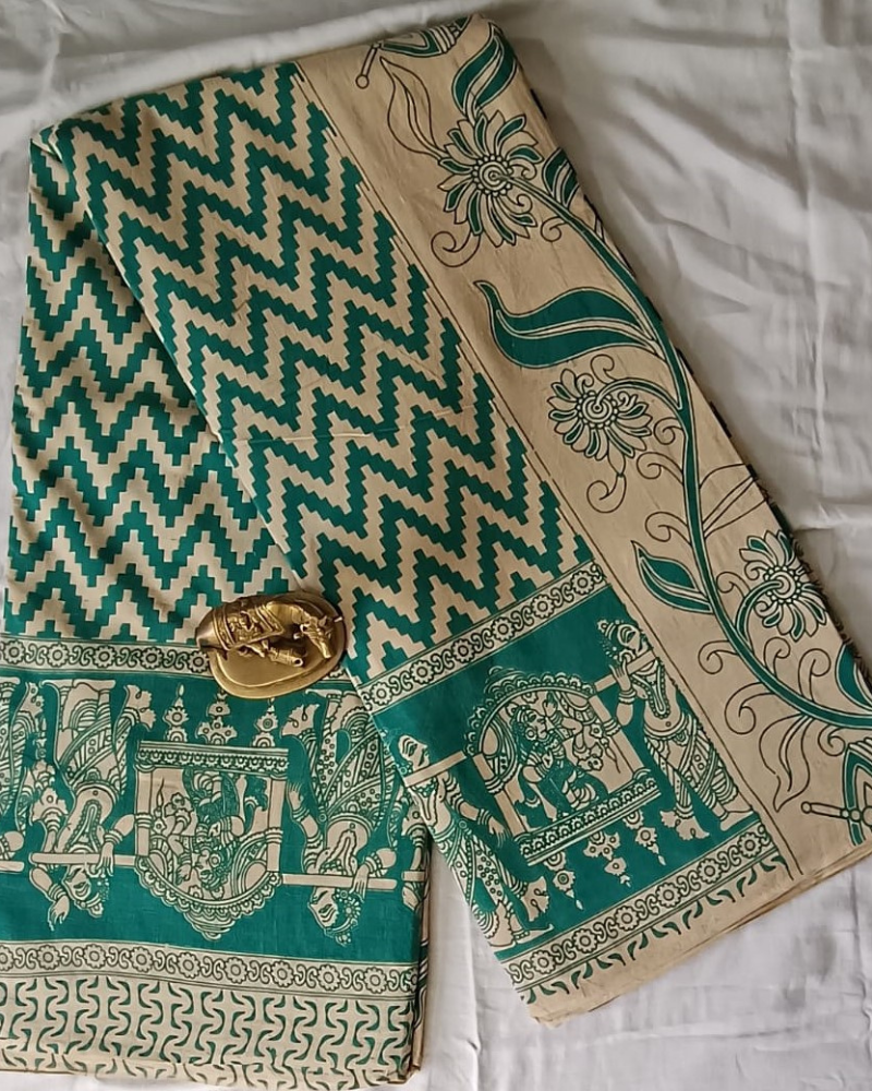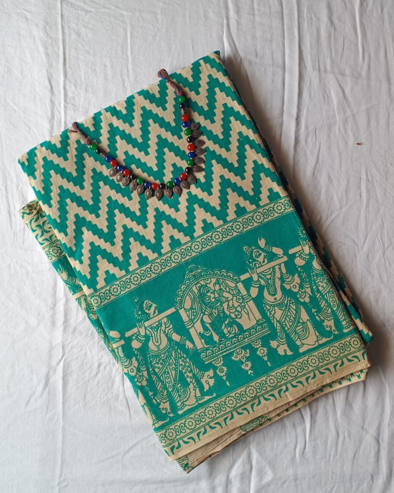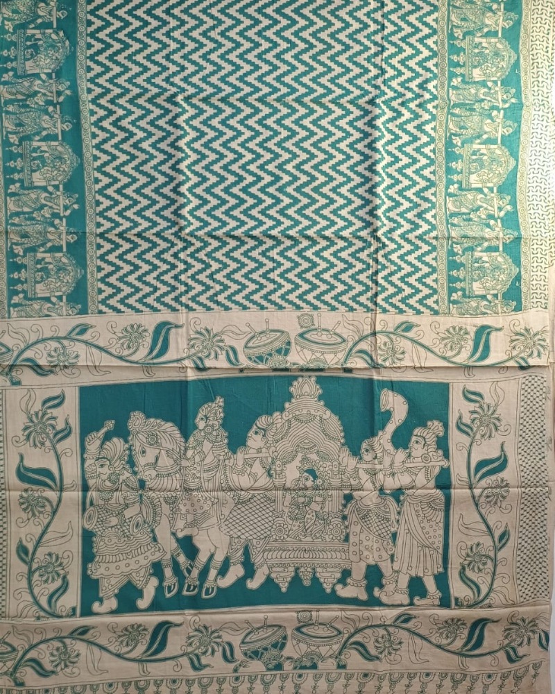 Blue & Beige Mangalgiri Cotton Saree