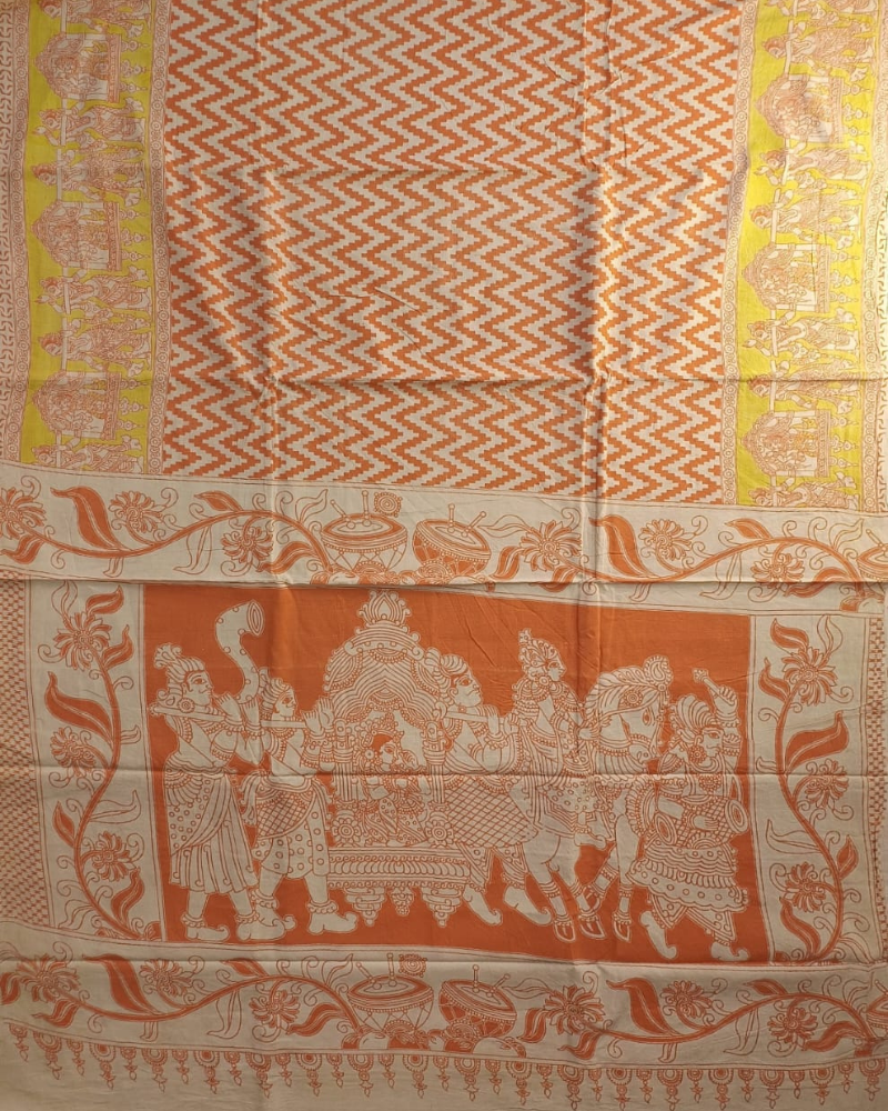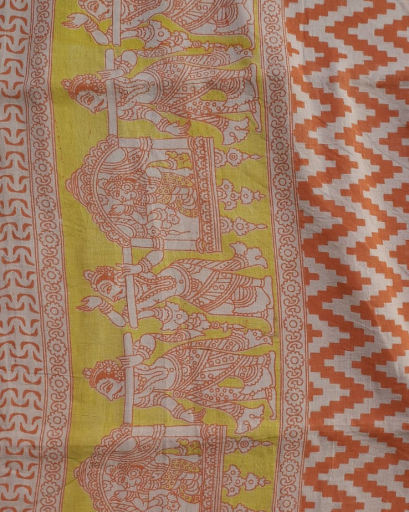 This elegant Red Mangalgiri Cotton Saree showcases traditional Chitrapat style doli design in its pallu and border, bringing a touch of culture to office wear saree. Made from high-quality Mangalgiri cotton and featuring a delicate screen print all over, this saree offers both comfort and style. Perfect for a formal event or a casual day out.