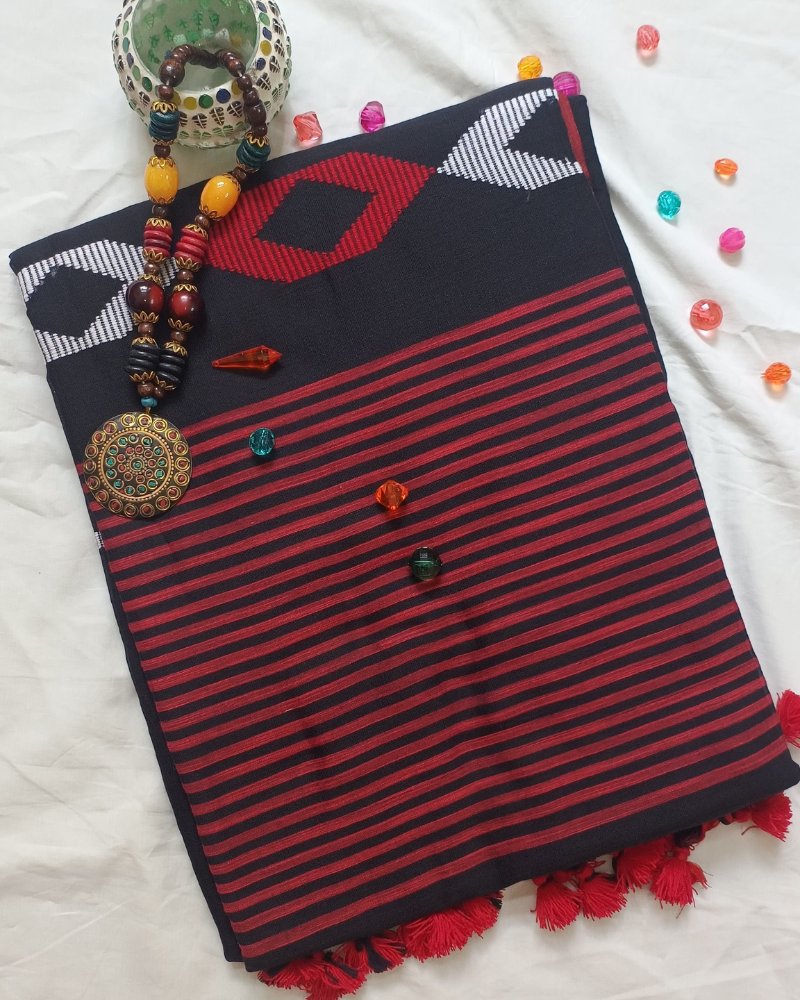 - Slight variations in color, weave irregularities, or minor imperfections are a natural part of handloom products, making each saree unique and special.