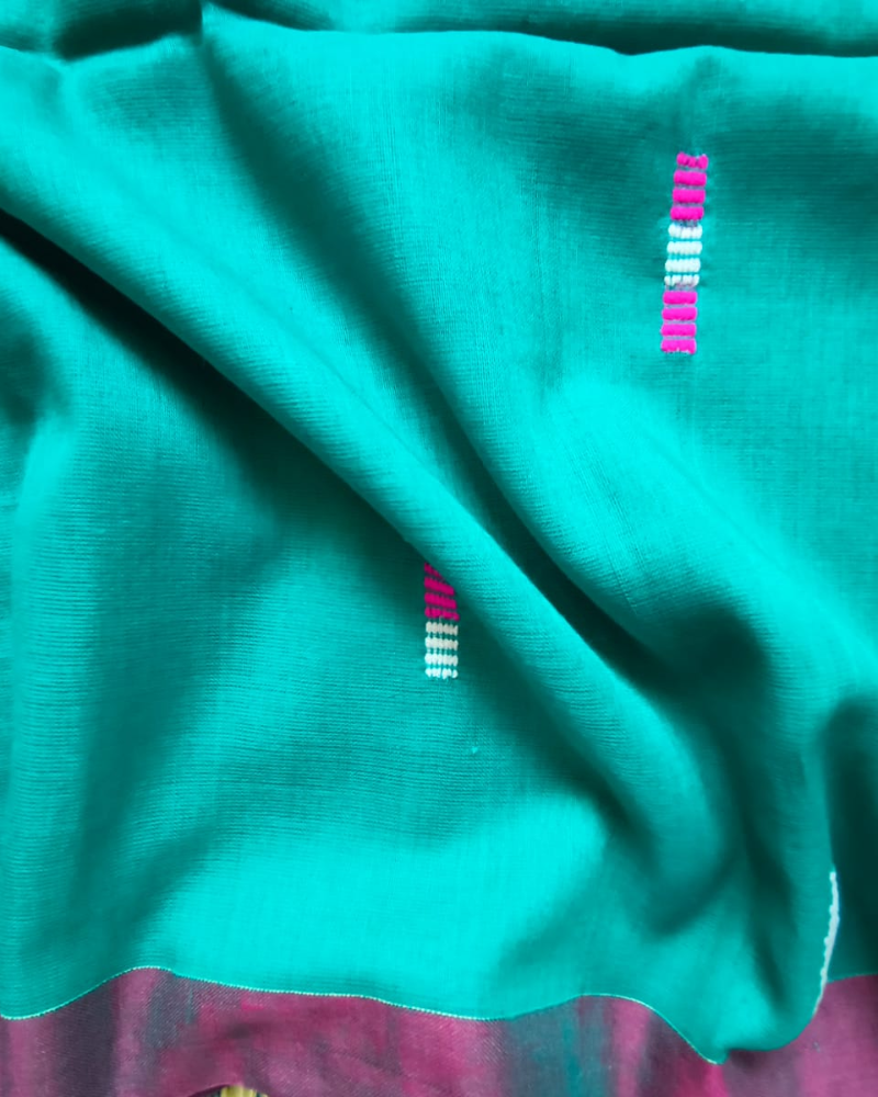 Handloom Teal Mul Cotton Saree